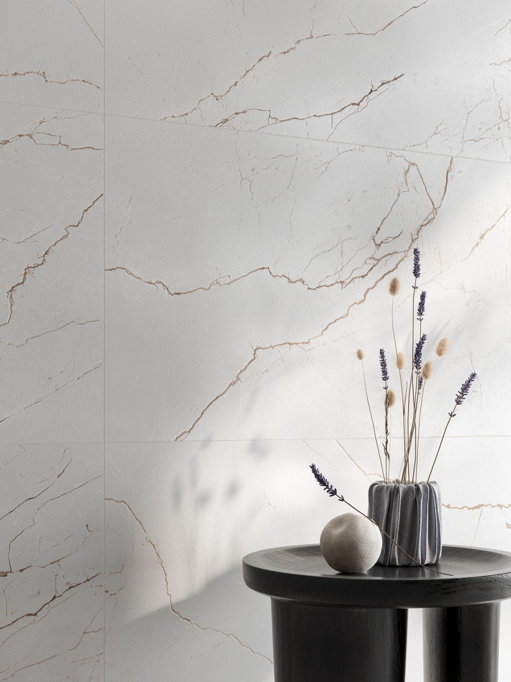 Fine årer dypt etset over en kompakt bakgrunn. Med årer forsterket av digital trykkteknologi tilbyr denne kolleksjonen et bredt utvalg av størrelser, for overlegne design uansett tilgjengelig plass. Veggflisserien er utsmykket med to forskjellige stiler som egner seg til å skape unike kombinasjoner av former og farger.