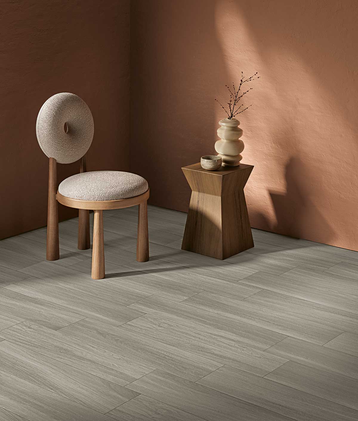 Inspirasjonskilden er tre, med sine overraskende fantasifulle årer. Den overordnede effekten minner om naturens varme og bringer oss tilbake til en kjent og omsluttende livsstil, nytolket gjennom et eksklusivt og fullendt keramisk produkt.