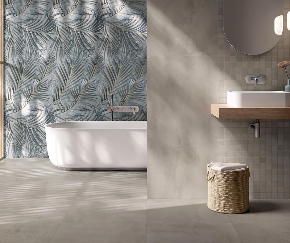 En enestående sementeffekt, preget av myke toner og knapt merkbare årer. En ekstremt elegant og moderne stil. Dens allsidighet gir den et enestående estetisk fokus når den brukes til gulvbelegg og koordinering av veggfliser.