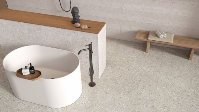 Kolleksjonen tilbyr en attraktiv steineffekt, der jevne farger formidler naturlig eleganse og er perfekte for paring, og skaper stilige kontraster ved hjelp av alternativer fra det brede utvalget av mønstre som minner om den rustikke skjønnheten til terrazzofliser. Denne stilparingen gir brukerne et bredt spekter av muligheter til å skape unike, spesialdesignede rom.