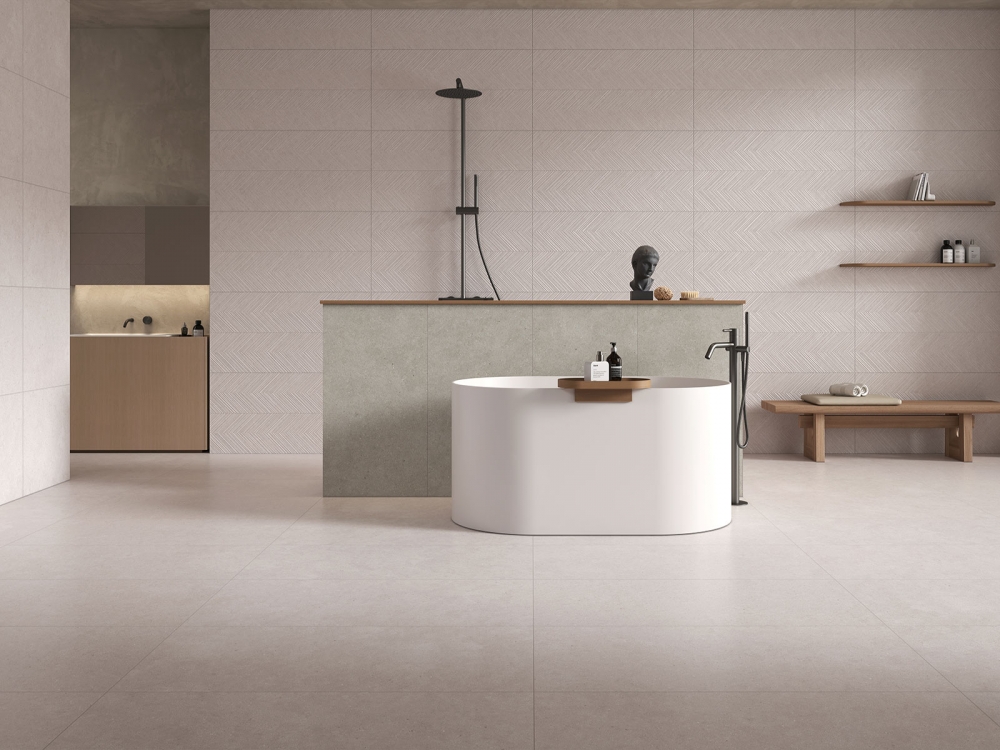 Flisstørrelsene er designet for å kunne brukes både innendørs og utendørs, noe som sikrer sømløse visuelle effekter og et design som er perfekt for ethvert miljø. "Chevron"-aksenten, som er tilgjengelig i alle fargene i kolleksjonen, gir et moderne preg og lar brukerne lage unike, spesialtilpassede design som vil forbedre ethvert rom.