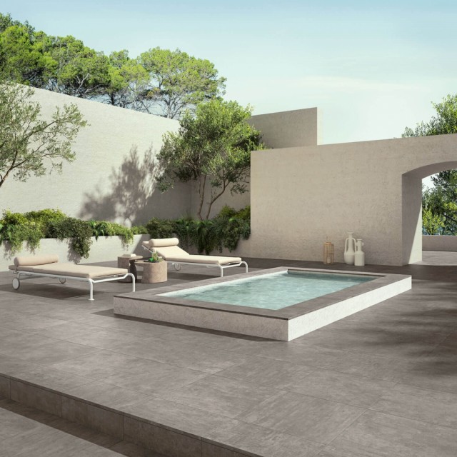 Fem farger og en rekke størrelser i sementstil designet for å innrede moderne oppholdsrom. Ideell for interiør og eksteriør med ekstremt raffinert estetikk og planløsning.