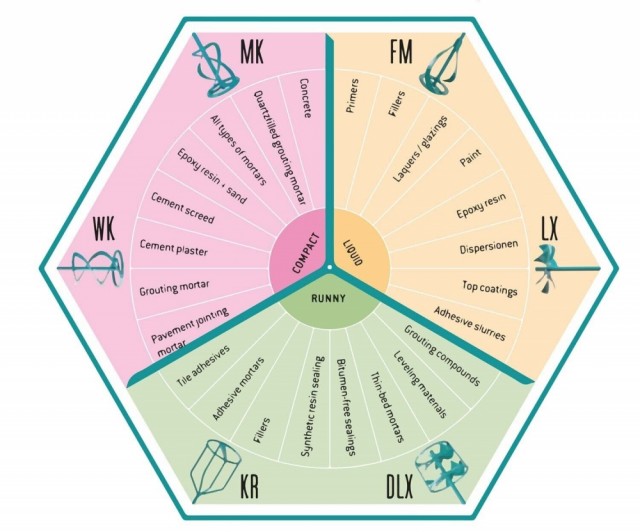 Kompakt. Ergonomisk. Kraftig - Collomix XO 1R passer bra til flislim, støp, mørtel och avrettingsmasse i mindre mengder. Inkluderer visp WK120 HF.